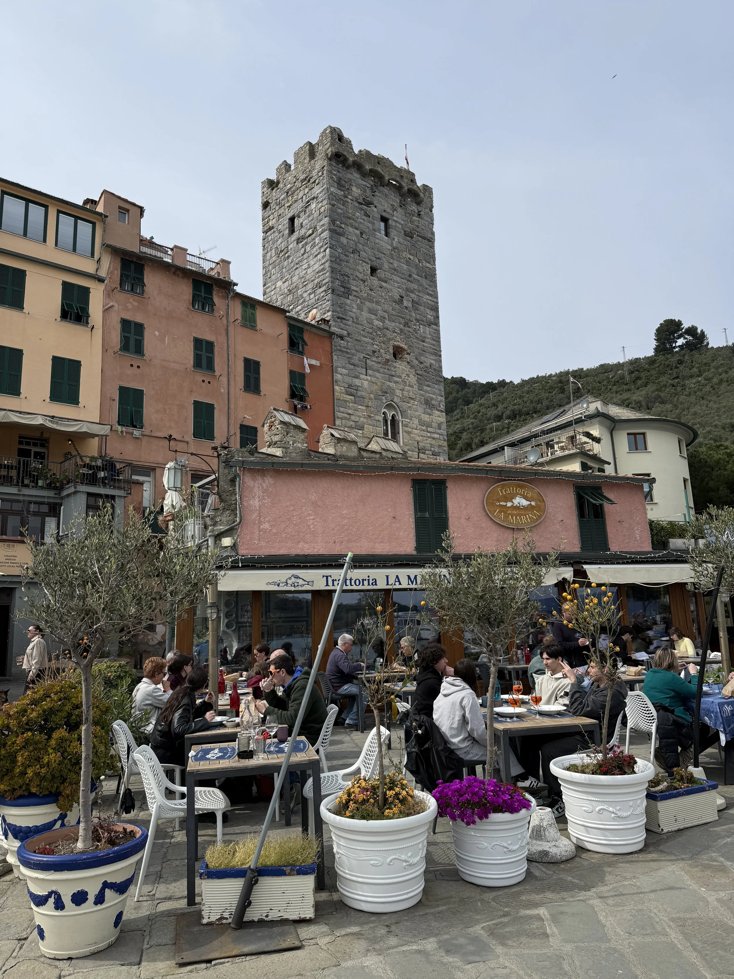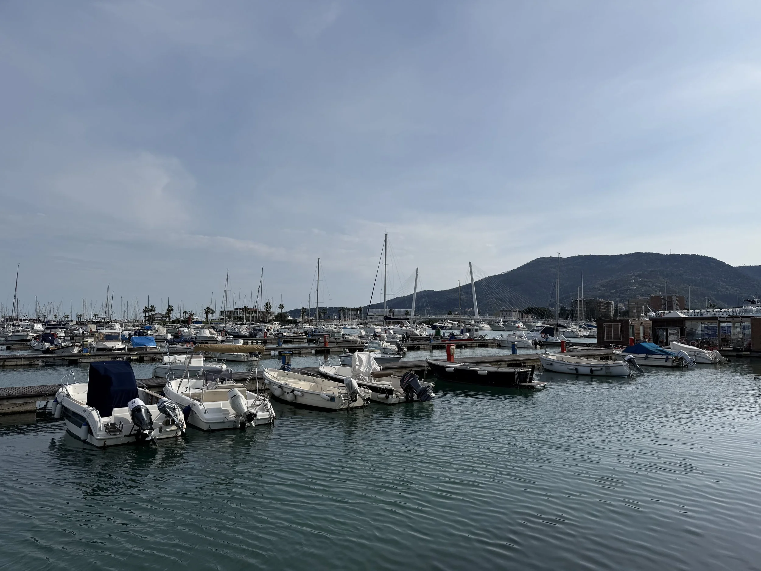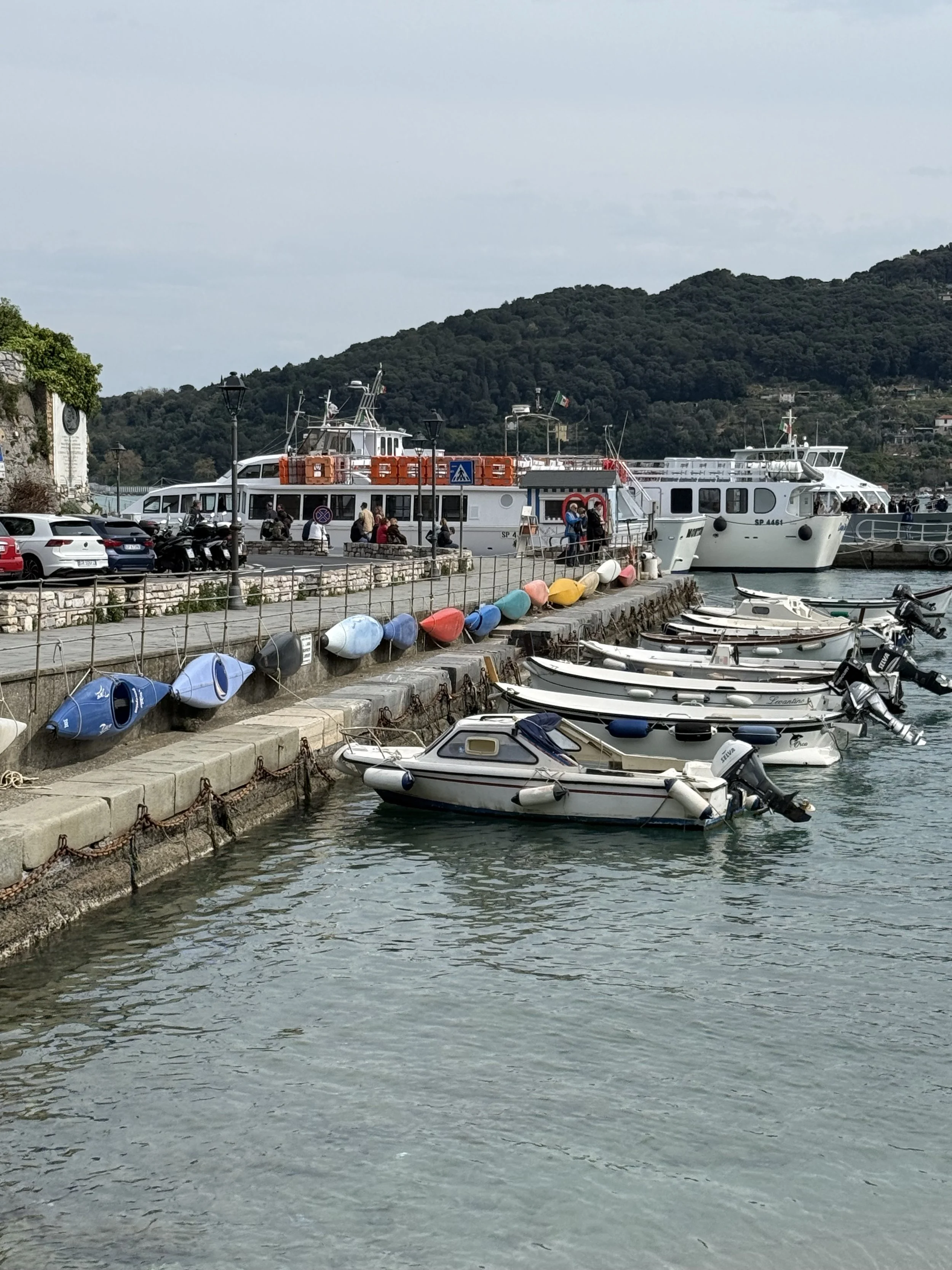 Notes about the photos: The rows of black floating things in the water is where they farm mussels. The last few photos are back in La Spezia.